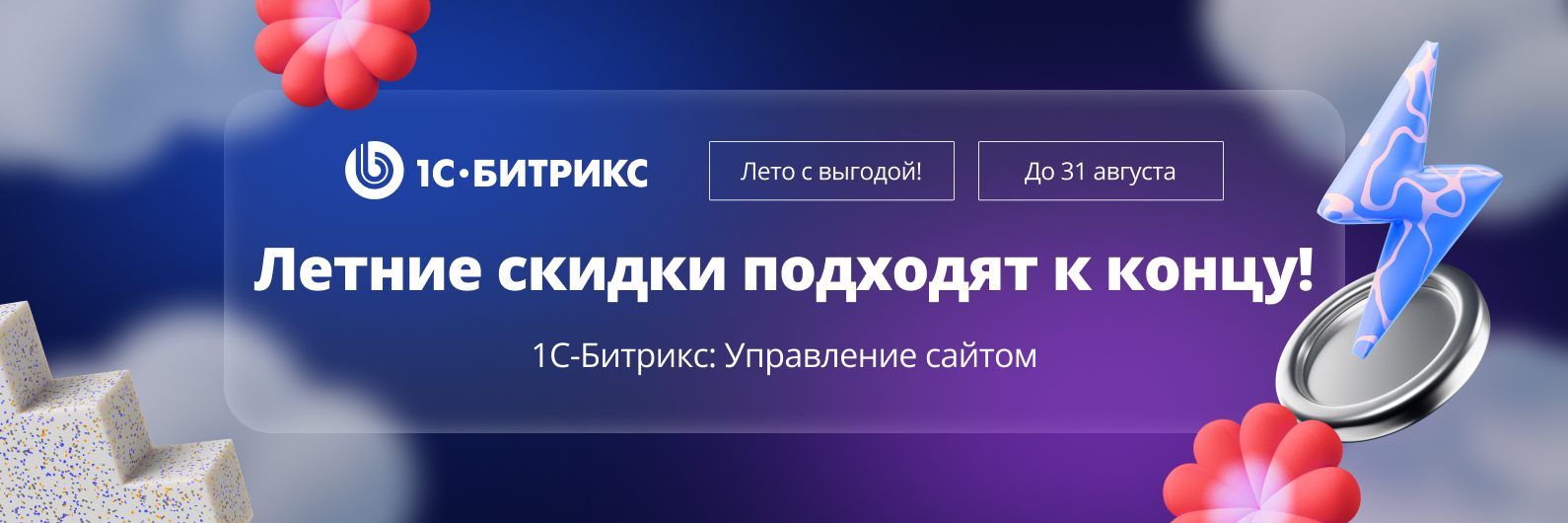 31 августа 2025 года завершается акция «Лето с выгодой». У вас есть 4 дня, чтобы приобрести лицензии «1С-Битрикс» по максимально привлекательной цене: