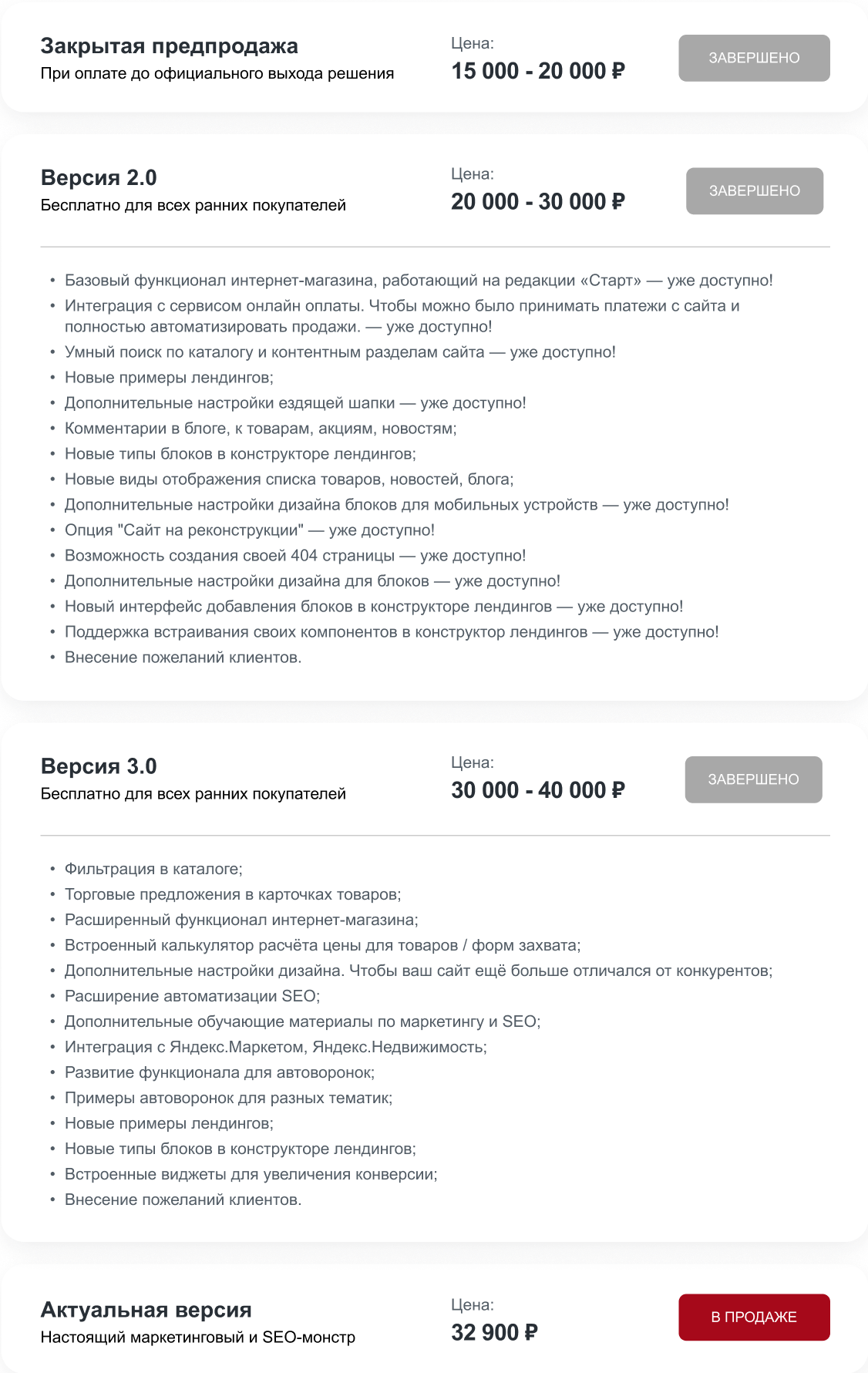 - Добавлен базовый функционал интернет-магазина: корзина, заказы, способы оплаты, способы доставки, единицы измерения, валюты и их курсы, полное оформление заказа и «заказ в 1 клик», возможность добавить маркетинговую и другую информацию в шторку корзины и пр.