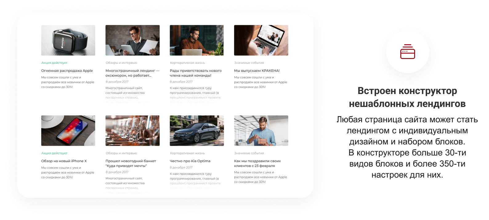 - Существенно упрощен процесс добавления блоков на лендинги. Теперь при выборе типа блока, показываются только тех свойства, которые актуальны для этого типа.