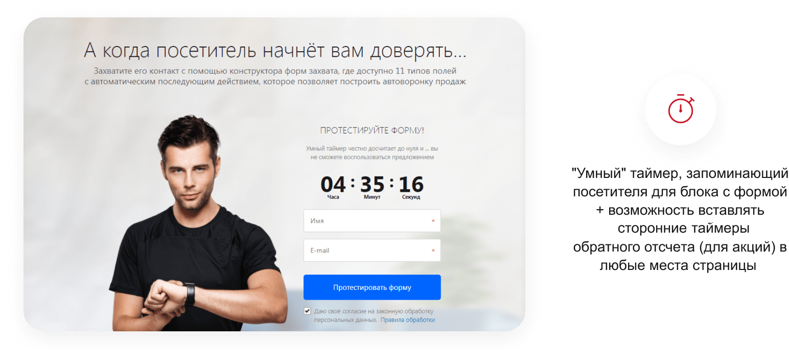 - Добавлена возможность добавлять в любое место лендинга ссылки, вызывающие формы захвата и модальные окна.