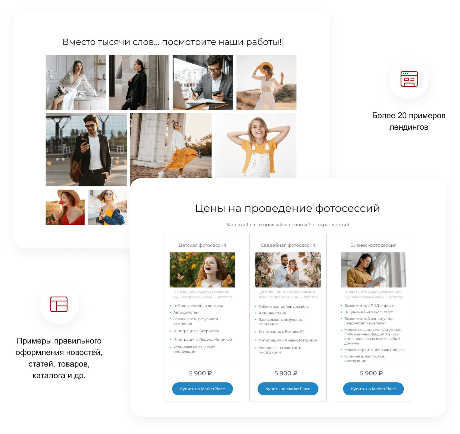 - Добавлен специальный тип блока для размещения своих «компонентов». Теперь в любой лендинг можно встроить сторонние модули из маркетплейса и/или свой произвольный PHP код.