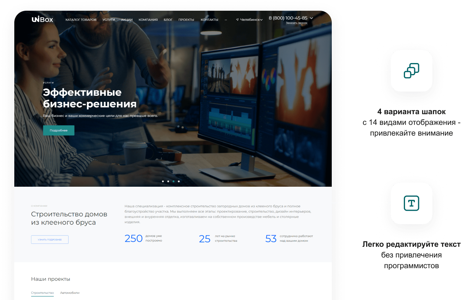 - Блок Преимущества. Добавлены настройки для использования ссылок, улучшена логика формирования ссылок