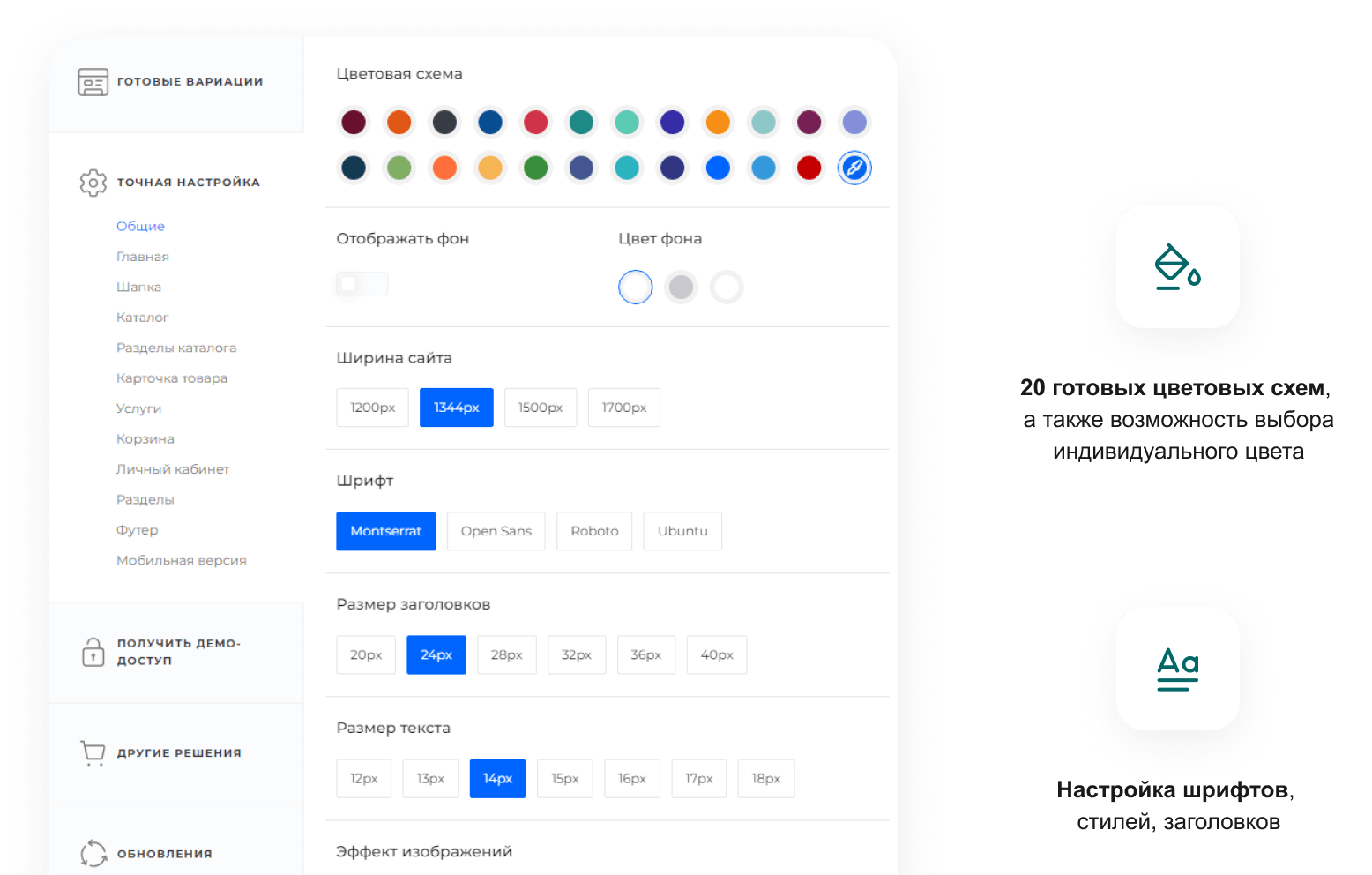 - В быстрые настройки сайта (шестерёнка) добавлена настройка для включения/выключения кнопки "Купить в 1 клик" в карточке товара