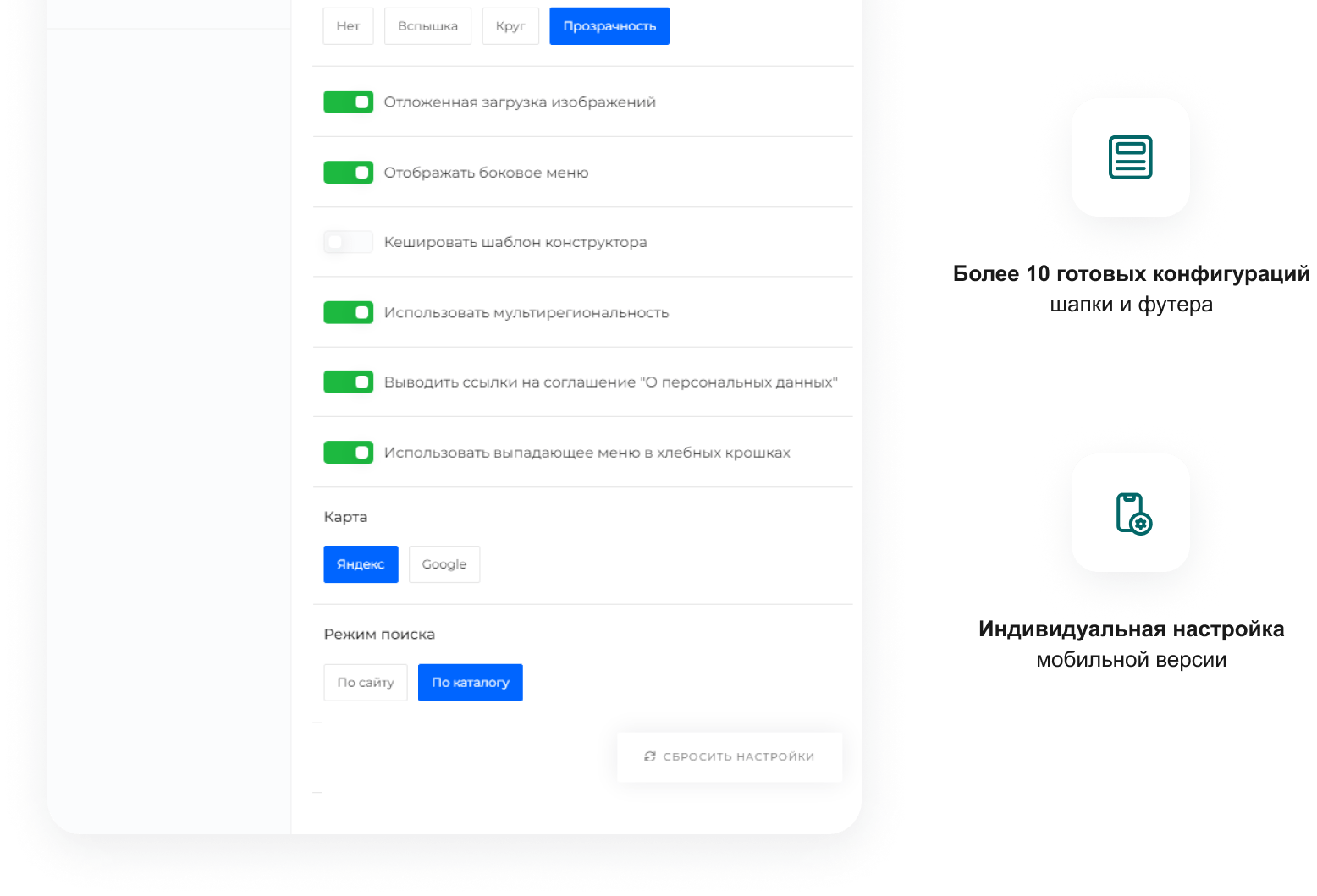 - Возможность добавлять пункты меню в нижнюю мобильную панель сайта